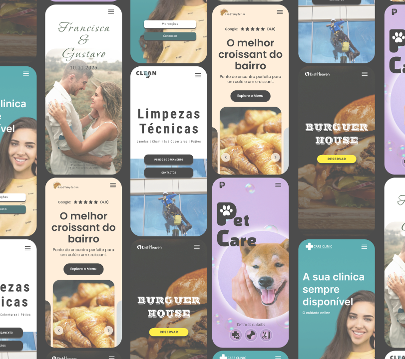 Aplicações de agendamentos, marcações, reservas, contactos e redes sociais integradas no website.